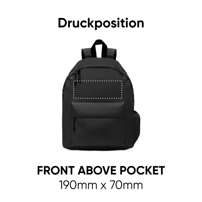 Rucksack mit Reißverschluss-Außentasche. Gepolsterter Rücken und seitliches Flaschenfach. 600D RPET-Polyester.