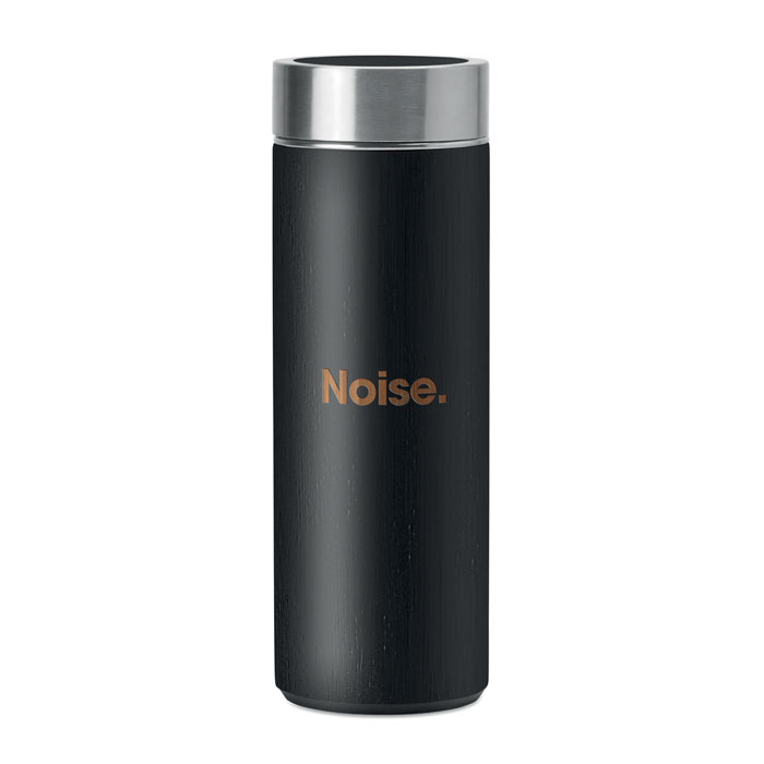 Doppelwandige Isolierflasche aus Edelstahl mit Bambus-Finish. Mit Tee-Sieb. Füllmenge: 400 ml. Bambus ist ein natürliches Produkt, es kann daher zu leichten Abweichungen in Farbe, Dekor und Maßen kommen. FSC®-certified | FSC 100%, N5.7, FSC-C213206