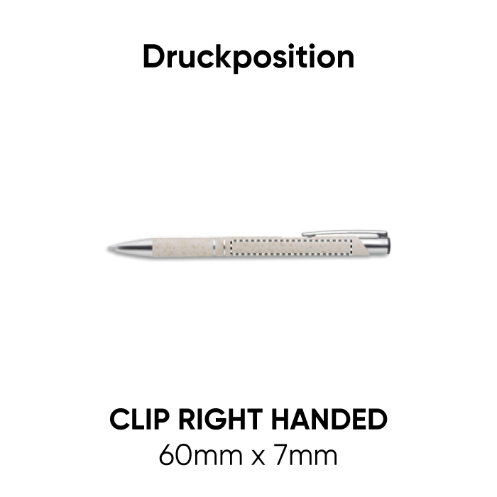 Druckkugelschreiber aus 50 % Weizenstroh und 50 % ABS-Material mit silbernen Details. Blaue Tinte.