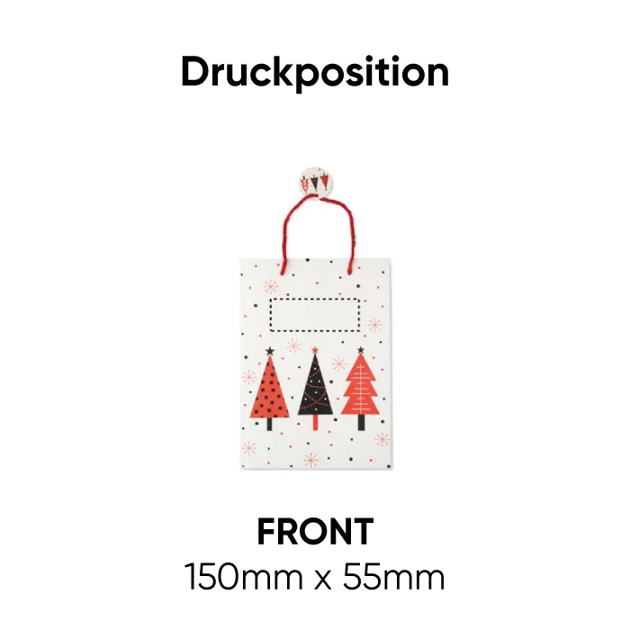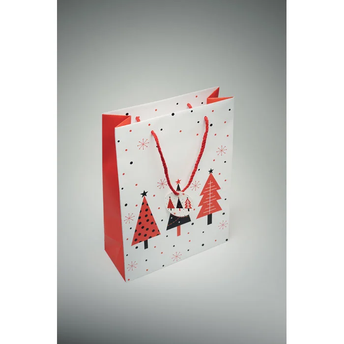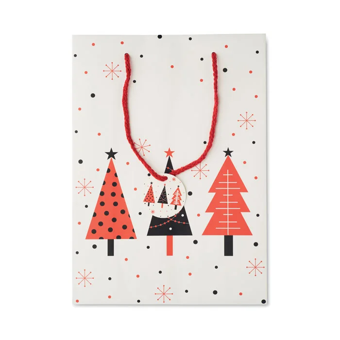 Große Geschenkpapiertüte mit weihnachtlichem Muster (30% recyceltes Papier) mit Anhänger. 150 g/m². FSC®-certified | FSC MIX, W5.3, FSC-C213206