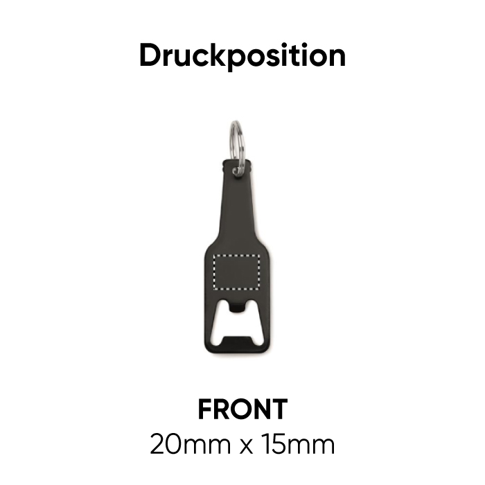 Schlüsselring mit Kapselheber in Form einer Flasche. Aluminium.