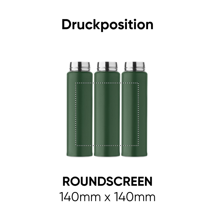 Doppelwandige Trinkflasche aus recyceltem Edelstahl (90% recycelter Edelstahl und 10% Edelstahl) mit Sicherheitsverschluss im Deckel und Öffnen-durch-Drücken Funktion. Auslaufsicher. Füllmenge: 300ml.