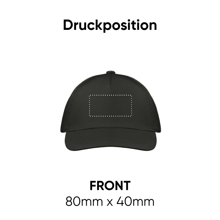 5-Panel-Baseball-Cap aus Baumwolltwill 150 g/m² mit verstellbarem Klettverschluss. Zwei farblich abgestimmte, umstickte Belüftungslöcher. Größe 7 1/4.