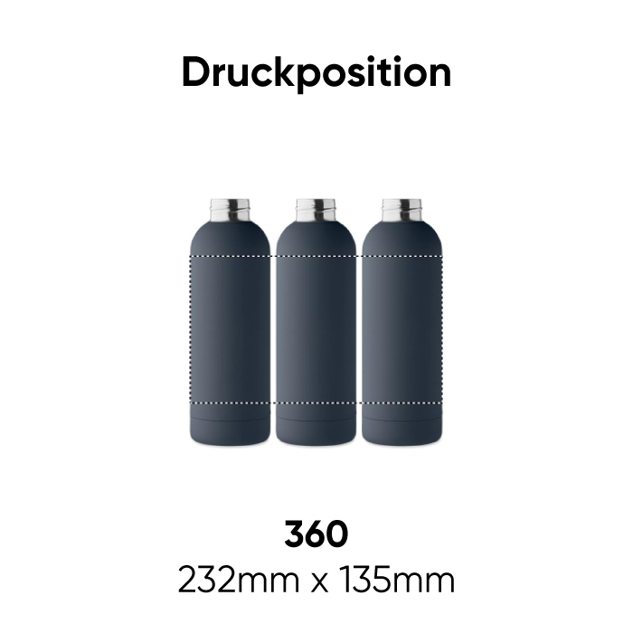 Doppelwandige Vakuum-Isolierflasche aus recyceltem Edelstahl (90 % recycelter Edelstahl und 10 % Edelstahl) mit gummiertem Finish und Schlaufe aus Silikon. Auslaufsicher. Füllmenge: 500 ml.
