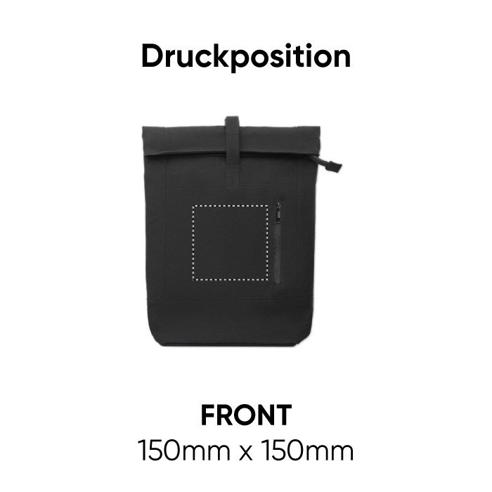 15““ Rolltop-Laptop-Rucksack mit Reißverschluss aus recycelter Pre-Consumer-Baumwolle (70%) und recyceltem Polyester (30%). Fronttasche mit Reißverschluss. Gepolsterter Rücken und Schultergurte. 340g/m².