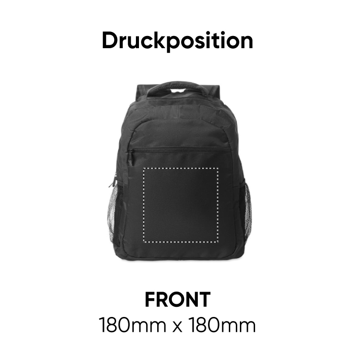 15“ Laptop-Rucksack aus 600D RPET-Polyester mit gepolstertem Laptopfach. Beidseitige Netztaschen und Reißverschlusstasche vorne