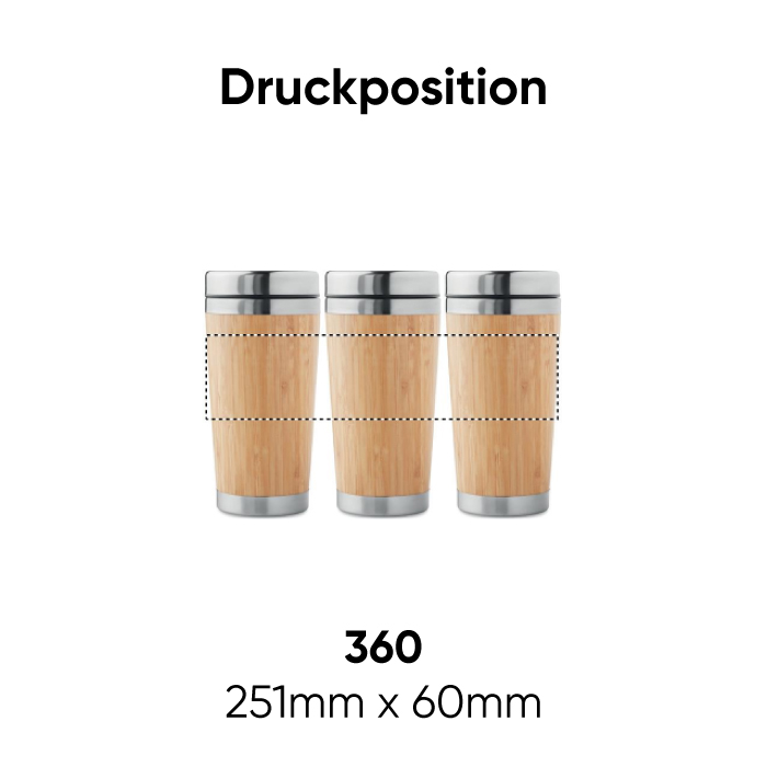 Doppelwandiger Trinkbecher aus Edelstahl mit Bambus-Finish und Deckel aus PP. Füllmenge: 400 ml. Bambus ist ein natürliches Produkt, es kann daher zu leichten Abweichungen in Farbe, Dekor und Maßen kommen.