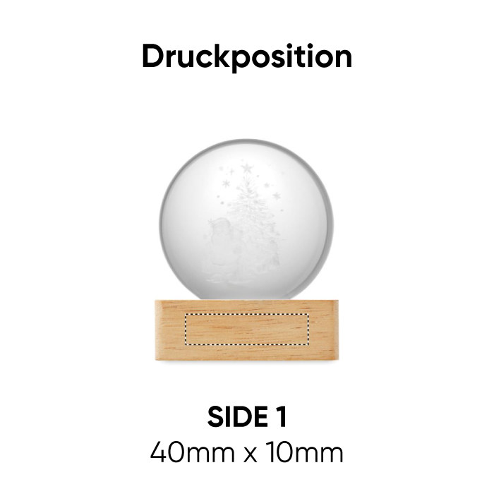 Glas-Weihnachtskugel mit LED-Licht (100 Lumen) auf Holzsockel. Inkl. USB-Ladekabel (90 cm).