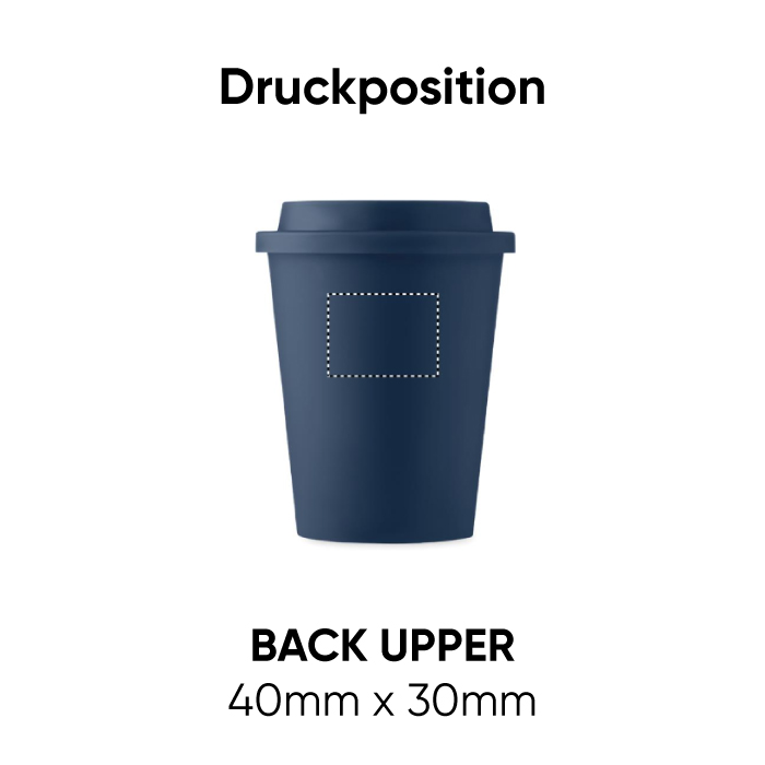 Doppelwandiger Becher aus PP mit Deckel. Füllmenge: 300 ml. Ein einfacher Becher, der Ihr Getränk über einen längeren Zeitraum warm hält. Ideal zum Mitnehmen auf Reisen.