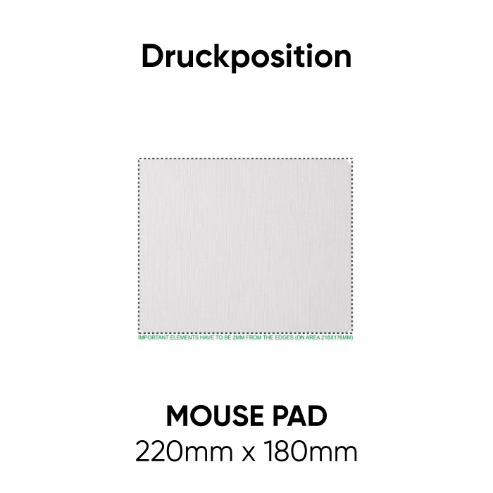 Mousepad mit gummierter Unterseite und Polyester-Oberfläche. Geeignet für Sublimationsdruck. Maße: 18cm x22cm.