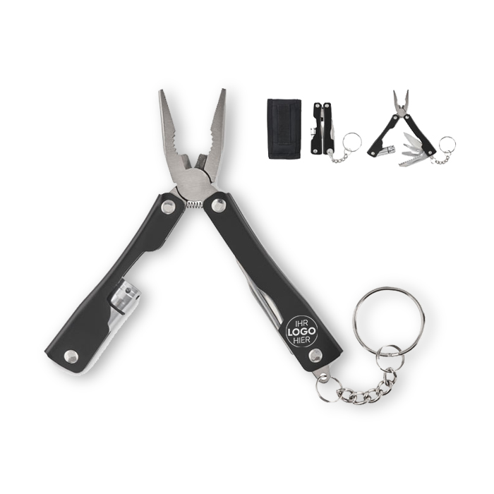 Schlüsselring aus Metall mit Zinklegierung und Textil-Anhänger.