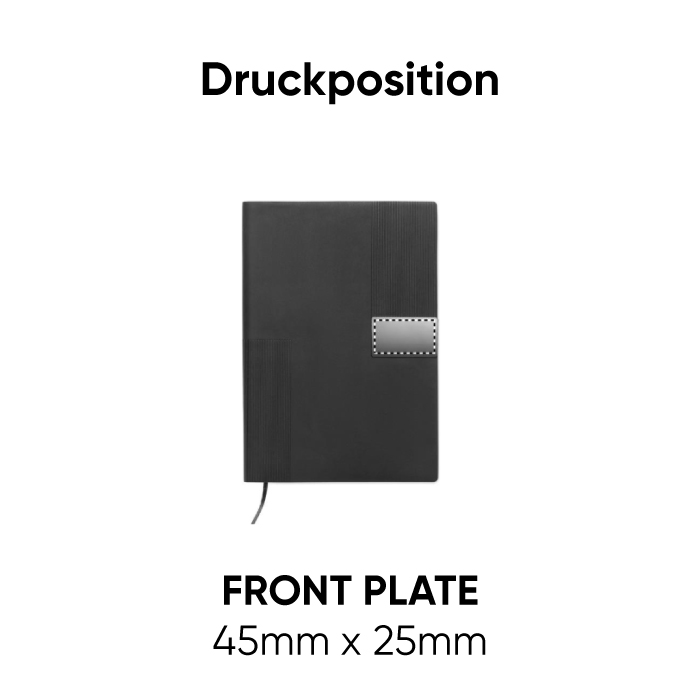 DIN A5 Notizbuch mit gebundenem Soft Cover aus PU. 80 Blatt (160 Seiten) liniertes Recyclingpapier (80 Blatt). Passender Elastikbandverschluss und Lesebändchen. Metall-Detail auf der Vorderseite.
