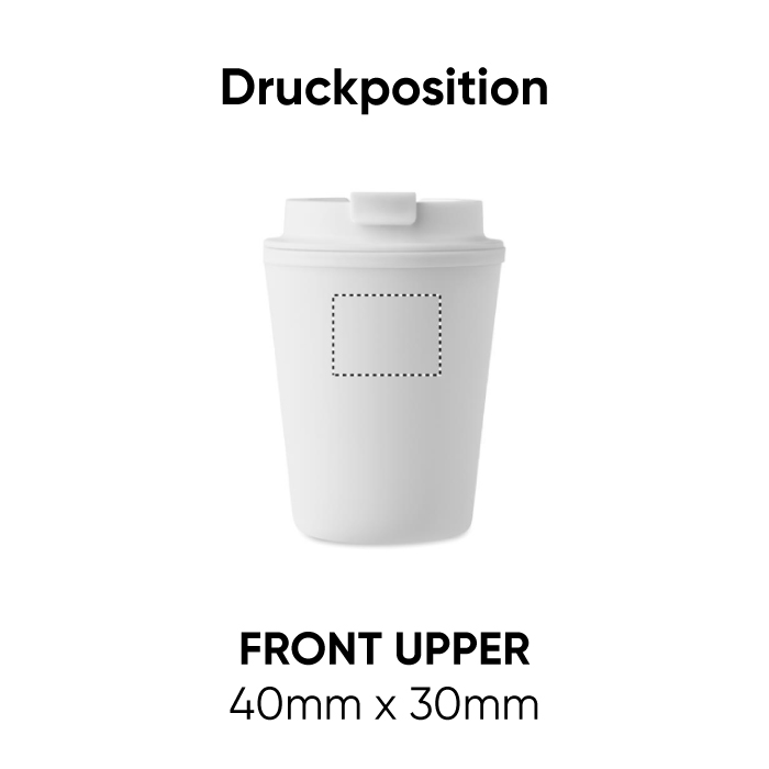 Doppelwandiger Trinkbecher mit Trinkdeckel aus PP. Füllmenge: 300 ml.