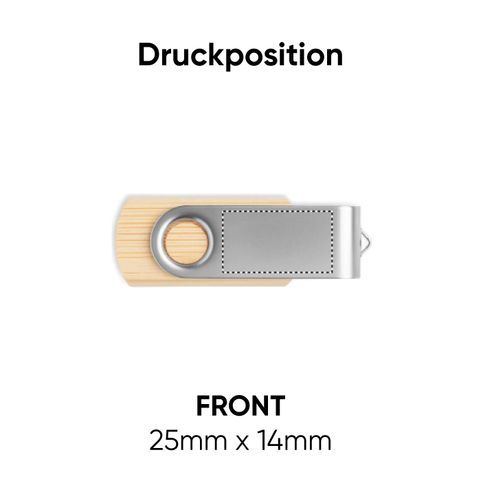 16GB USB 2.0 Stick. Gehäuse aus Bambus mit drehbarer Schutzabdeckung aus Metall. Drehen Sie die Abdeckung und der USB Stick kann an den USB- Anschluss angeschlossen werden. Zzgl. Gema. Bambus ist ein natürliches Produkt, es kann daher zu leichten Abweichungen in Farbe, Dekor und Maßen kommen.