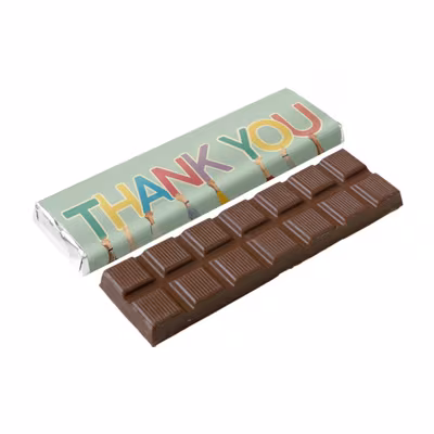 Vollmilchschokoladenriegel von ca. 75 Gramm mit farbig bedruckter Banderole